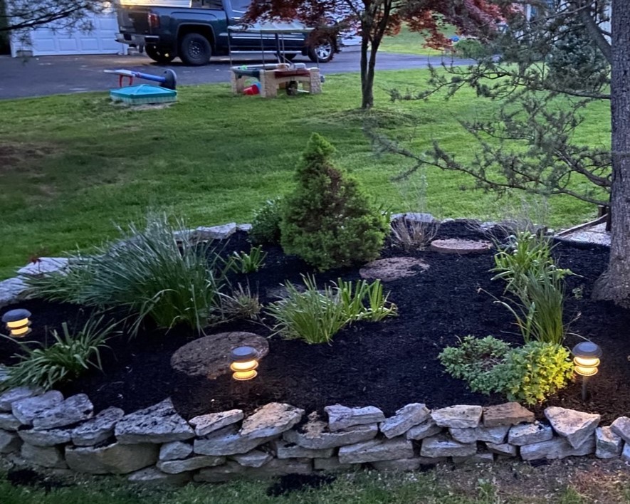 We install the mulch carefully around bushes, flowers, and plants. Our guys lay it at the right thickness to last but make sure that it sits under the edge. Our edging along with this type of installation has our clients consistently commenting on how long their beds stay looking sharp.